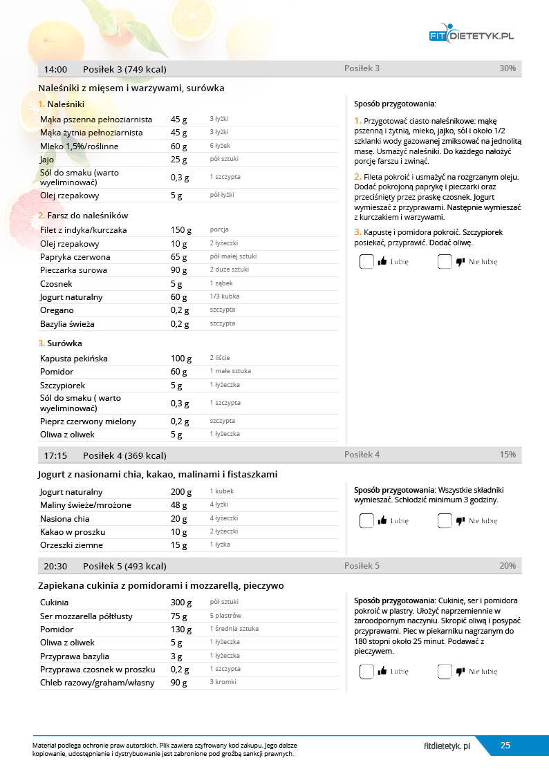 w formie precyzyjnych jadłospisów wielodniowych (na każdy dzień miesiąca jest opracowany osobny jadłospis). Tutaj nie musisz zastanawiać się co zjeść każdego dnia, gdyż będziesz mieć dokładnie wszystko rozplanowane.