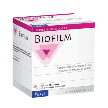 Biofilm to produkt bogaty w błonnik rozpuszczalny, inulinę z cykorii i FOS (fruktooligosacharydy), które wytwarzają maślan i propionian fermentacji. Biofilm może być zalecany w przypadku niezrównoważonej diety błonnika pokarmowego, wspiera terapię stanów zapalnych błony śluzowej jelit. Suplement diety opracowany na podstawie badań naukowych.Rekomendowany do suplementacji w: