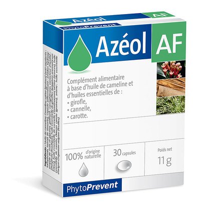 Azeol AF jest suplementem diety opracowanym na bazie oleju z lnicznika siewnego (Camelia sativa) i specjalnej kompozycji olejków eterycznych z goździka, cynamonu i nasion marchwi. Zastosowany w produkcji, opatentowany proces Quality Silver, gwarantuje maksymalną jakość i trwałość oleju w okresie przydatności do spożycia.Rekomendowany do suplementacji w:
